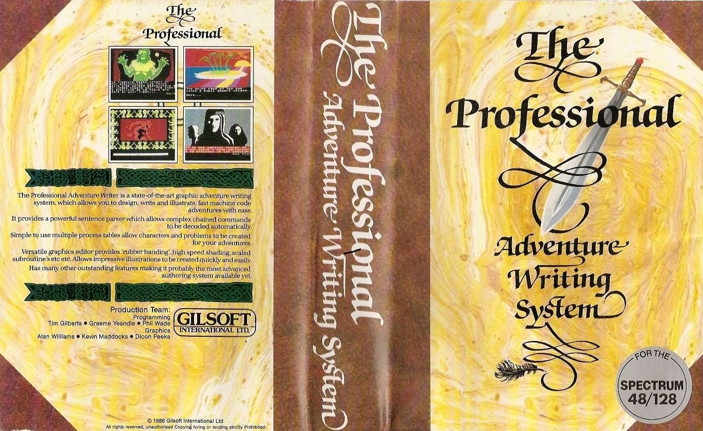 The Professional Adventure Writer is a state-pf-the-art graphic adventure writing system, which allows you to design, write and illustrate, fast machine code adventures with ease.