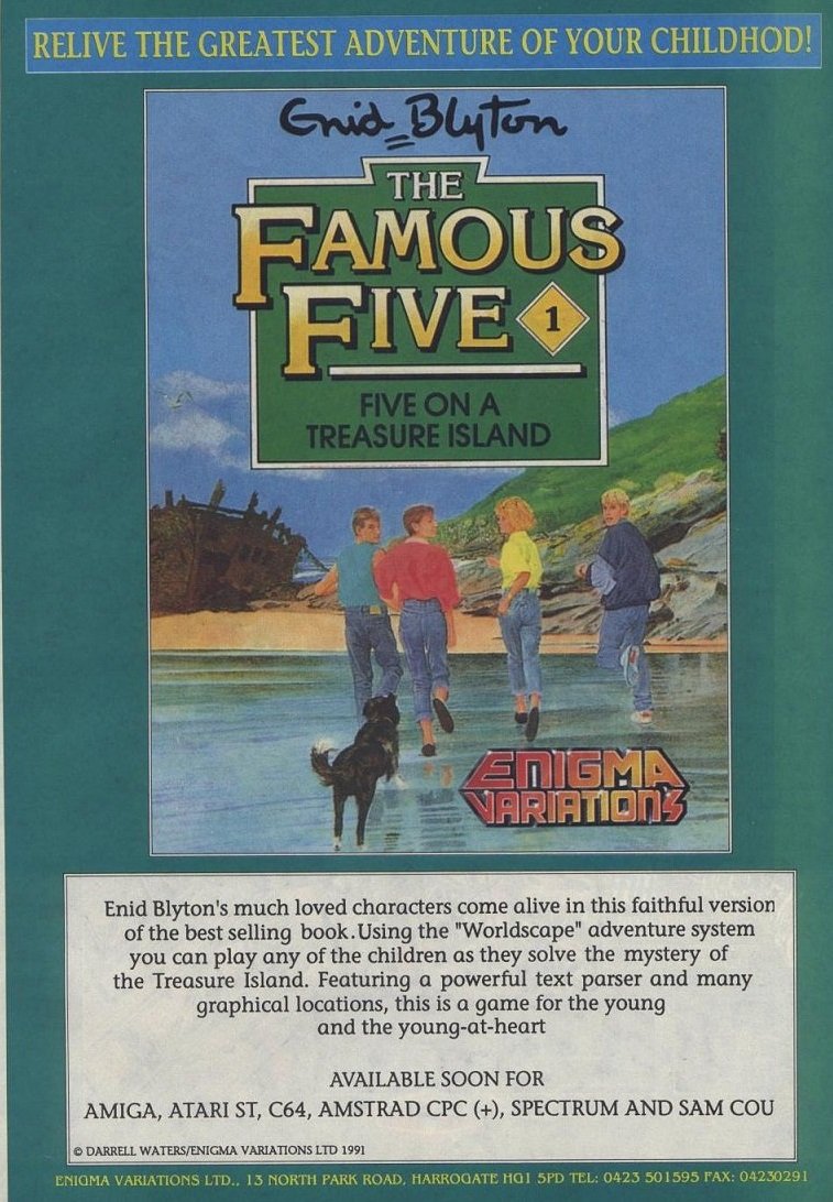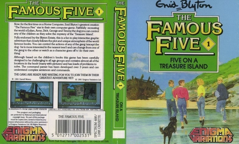 Now, for the first time on a Home Computer, Enid Blyton's greatest creation "The Famous Five" star in their own computer game. Faithfully recreating the world of Julian, Anne, Dick, George and Timmy the dog you can control any of the children as they solve the mystery of the 'Treasure Island'.